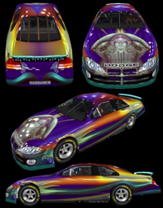 On these pages will be pictures of rides that are finished and running on the Nascar 2003 sim tracks.... There will also be pages displaying cars made for those who want attitude ..meaning not for the kids viewing...these will be cars painted by my associate Harry Hole...thx for stopping in and browsing...enjoy...DH